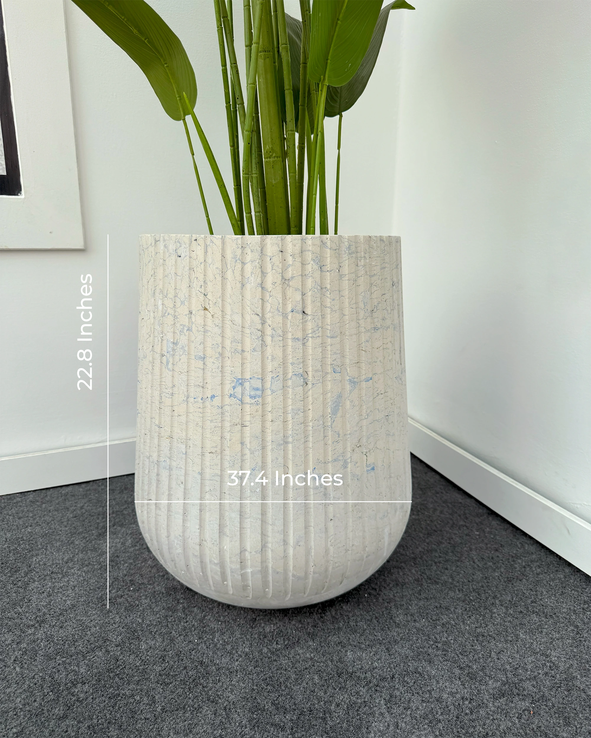 The Modern Marble Planter brings sculptural beauty and refined elegance to modern interiors. Expertly crafted from premium engineered marble, it features vertical hand-carved detailing that accentuates the stone’s natural veining — making each piece truly one of a kind.