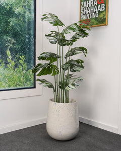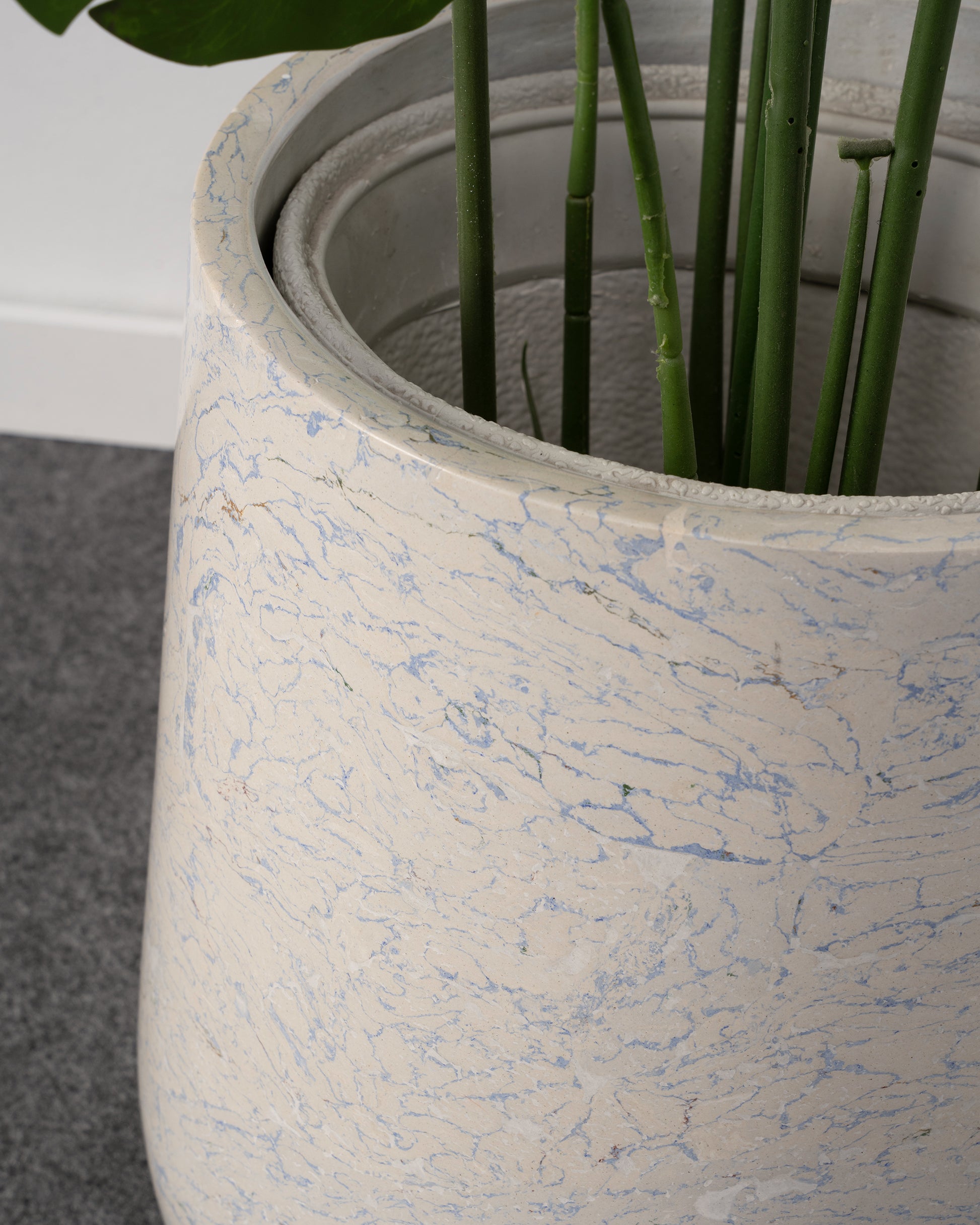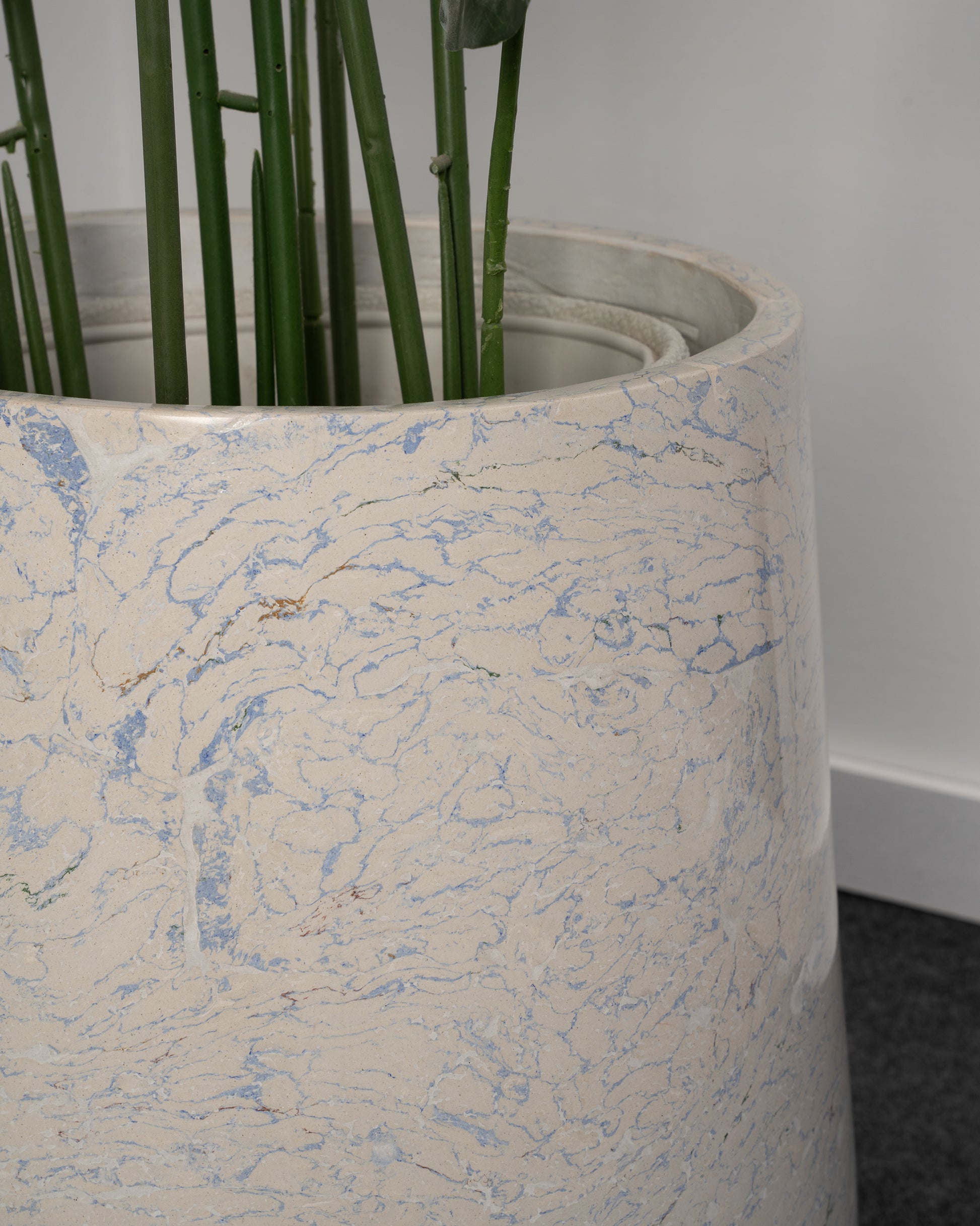 A statement of modern craftsmanship and natural elegance. Handcrafted from engineered marble, this planter features distinctive veining that makes every piece unique.