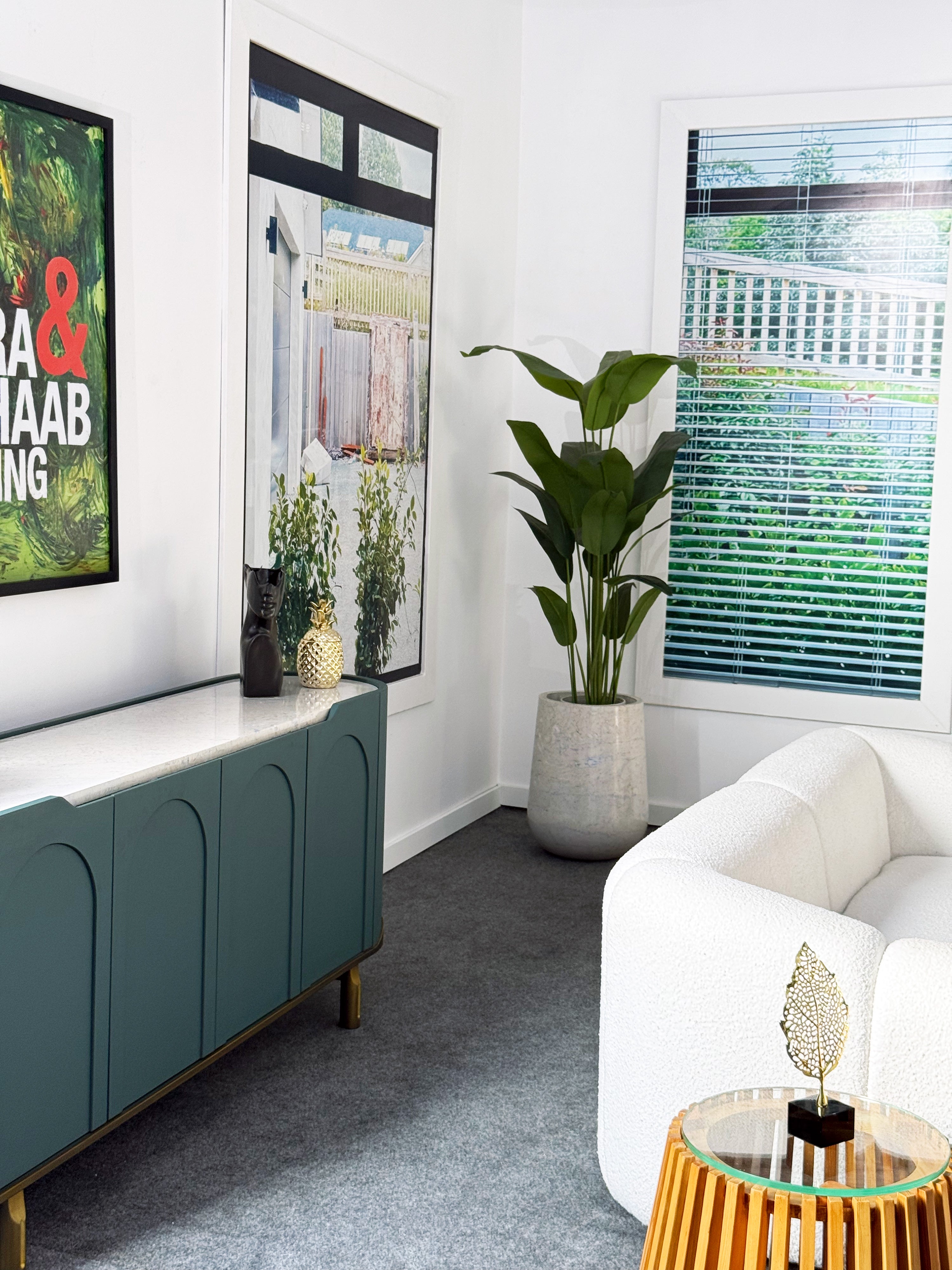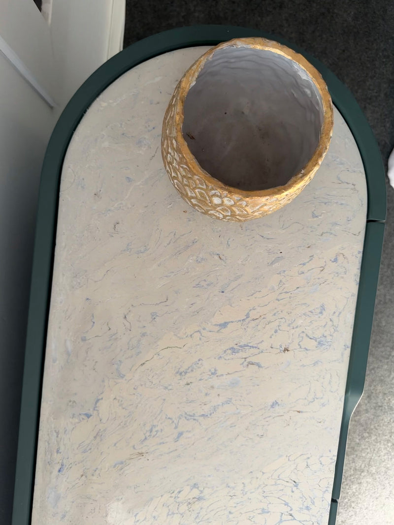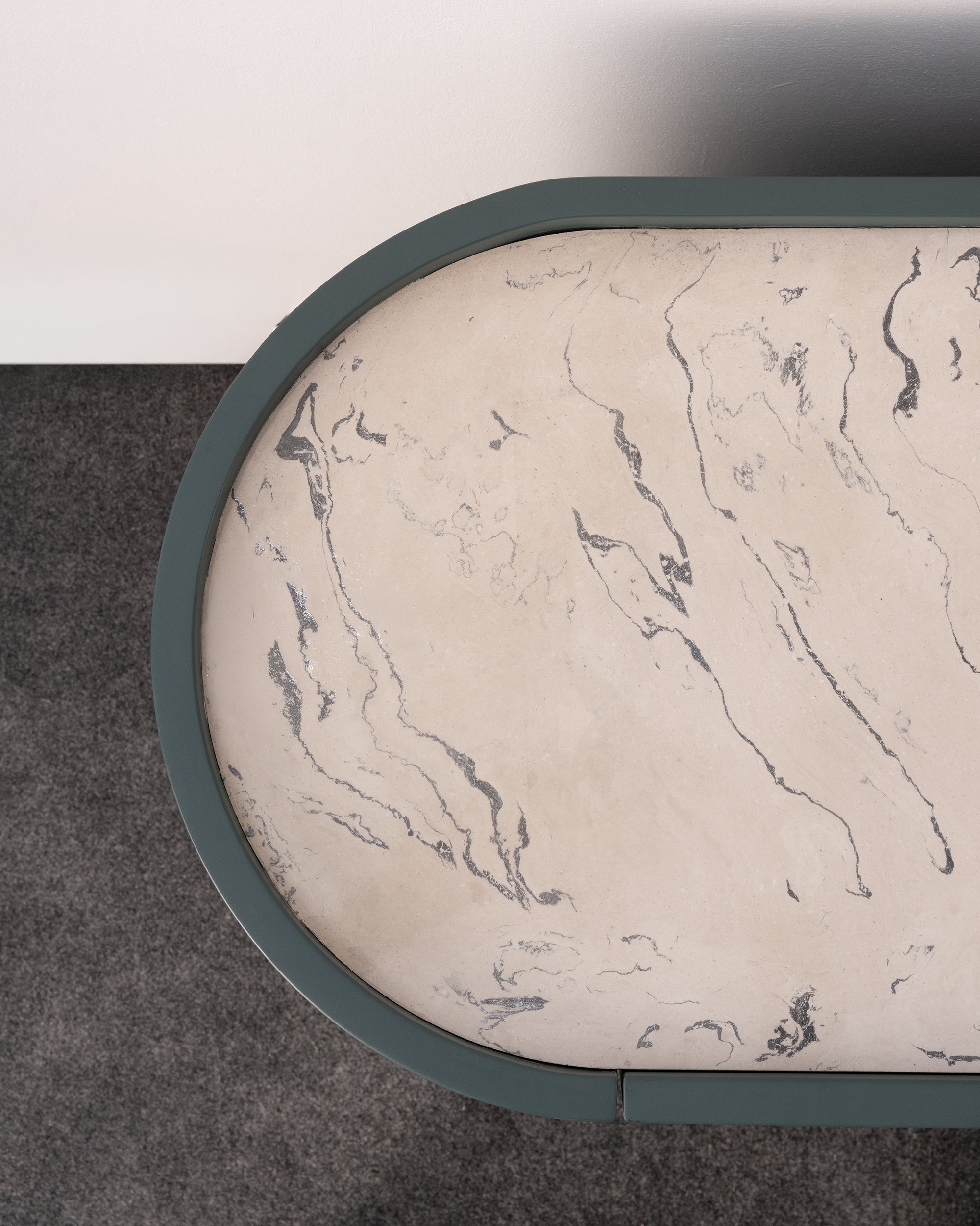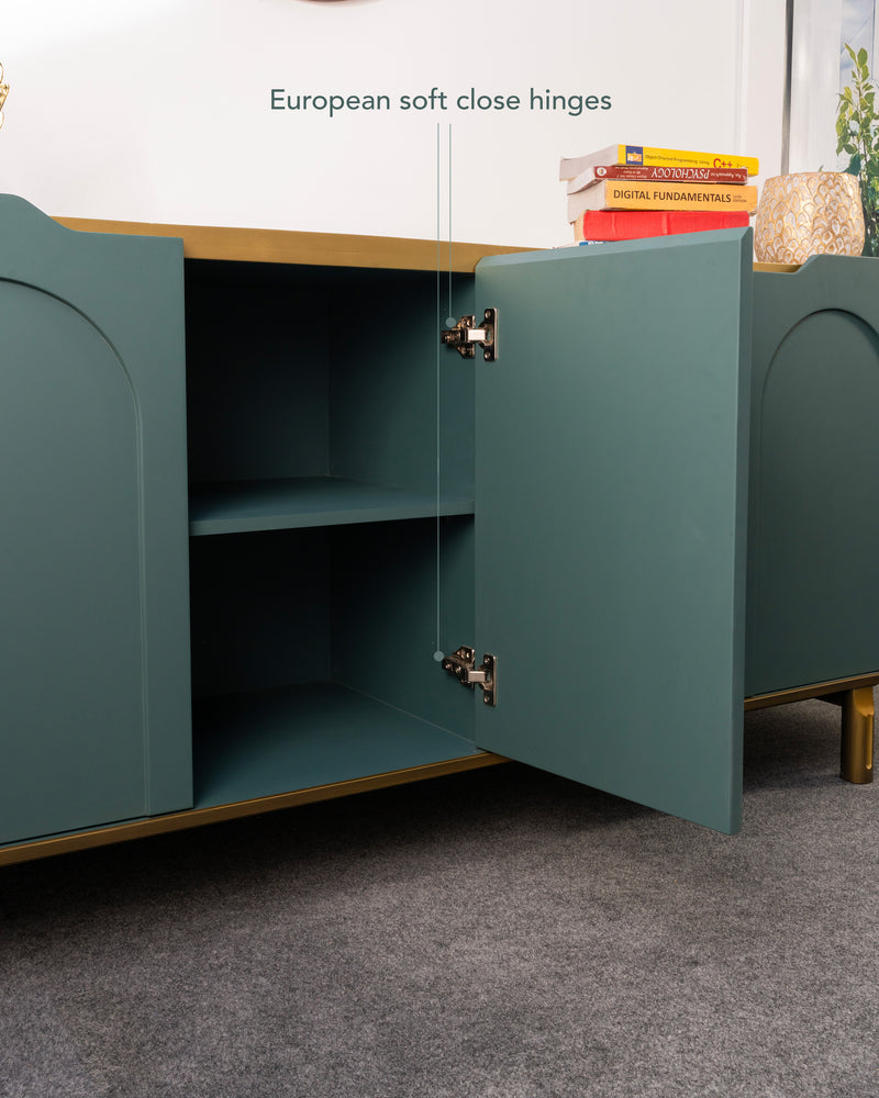 The Luna Console embodies modern sophistication with its graceful curves and architectural form. Finished in a deep, rich green and accented with warm golden details, it adds a touch of refined luxury to any interior.